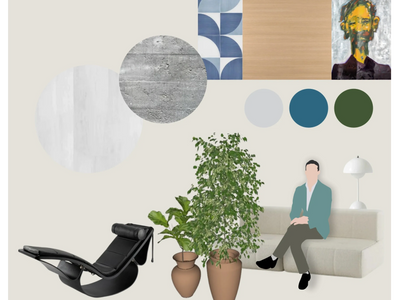 a materialidade equilibra concreto aparente, madeira natural, marcenaria e pintura em tons profundos de verde e azul. o contraste entre superfícies minerais e texturas quentes constrói uma atmosfera sofisticada e serena. a iluminação linear no teto conduz o olhar e reforça a sensação de continuidade, enquanto pontos de luz indireta criam conforto visual.